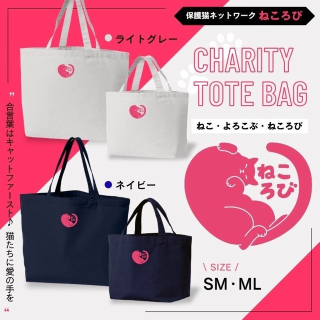 名古屋市の保護猫ネットワーク『ねころび』から チャリティーバッグができました! かわいいトートバッグで、保護ネコ活動を応援できます。 ※こちらの商品の必要経費を抜いた売り上げの全額は保護猫の日々の食事・医療費等のために寄付させて頂きます。 [キャンバストート詳細] 素材:綿100% 生地の重さ:315g/m2 9.0oz 生地の種類:キャンバス 【ねころび History】 ねころびは名古屋市のなごやかキャットサポーターとして TNR活動を行う保護猫ネットワークです 猫の幸せを最優先に活動しています TNR とは、 野良猫を捕獲(Trap・トラップ)し 不妊去勢手術(Neuter・ニューター)を行い 元の場所に戻す(Return・リターン) 猫にも人にも優しい地域活動です 〜人も動物も幸せに〜 ・TNR活動/譲渡会/子ども向け啓発イベント ・保護猫シェルター“ねころば”運営 常時60匹 外では生きていけない猫たちを保護しています