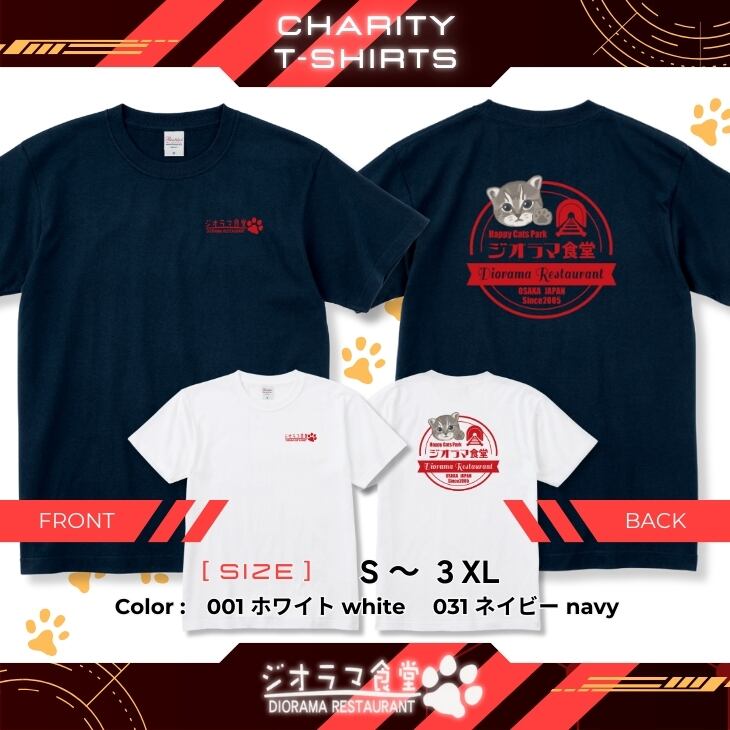 A charity T-shirt is now available for Diorama Shokudo, a cat shelter cafe in Tennoji, Osaka!