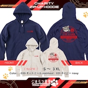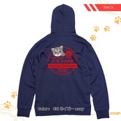 ジオラマ食堂 チャリティー パーカー 本店ロゴ デザイン 保護ネコ 支援 フード ネコ 猫 ネイビー オートミール