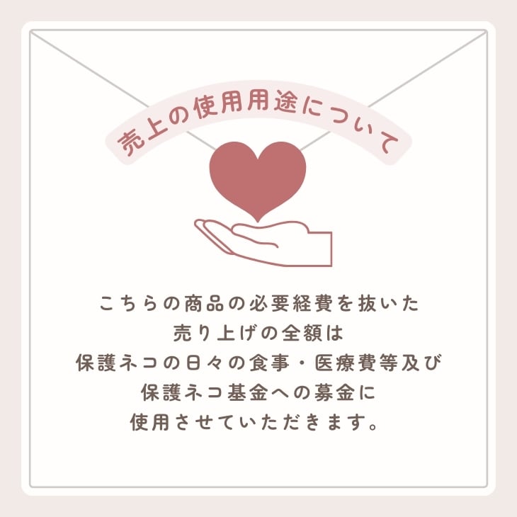 ※こちらの商品の必要経費を抜いた売り上げは、保護猫の日々の食事・医療費等に使用させていただきます。※アニマルチップスにて代理販売させていただいております。
