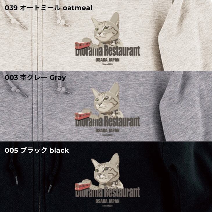 ジオラマ食堂 チャリティー パーカー キジトラ サラ ねこ 保護ネコ 支援 ネコ 猫 ジップ チャック ブラック 黒 グレー