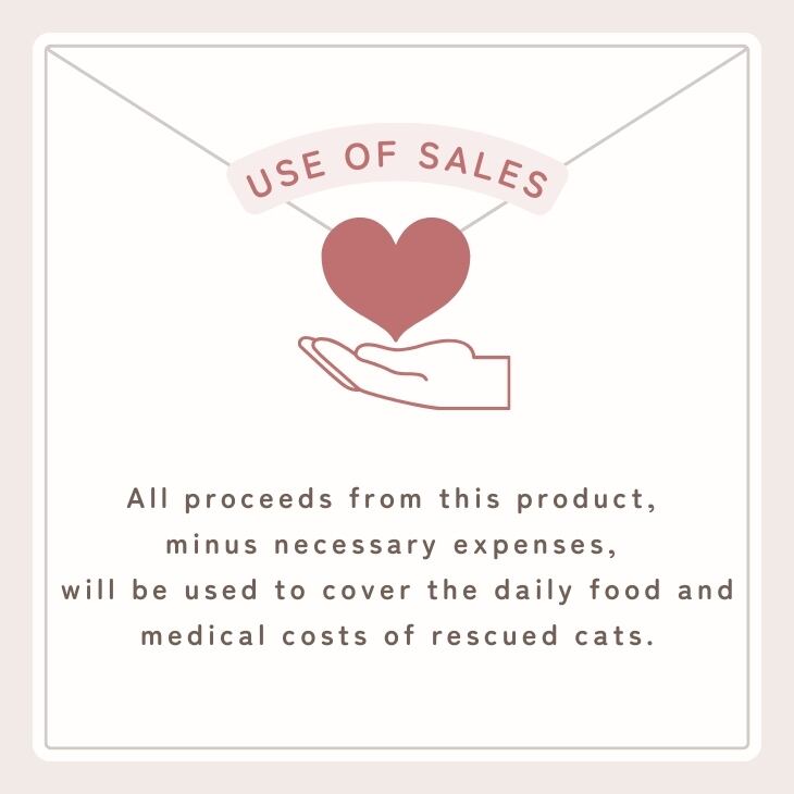 * Proceeds from this product, after deducting necessary expenses, will be used to cover the daily food and medical expenses of rescued cats. * Animal Chips is selling this product on our behalf.