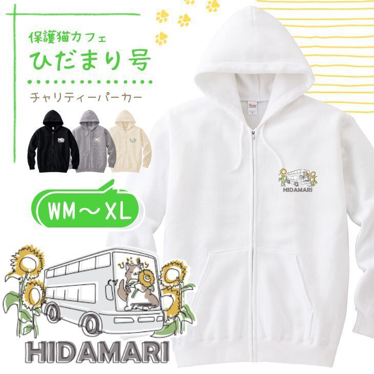 名古屋市西区の『保護猫カフェひだまり号』のチャリティーパーカーができました!