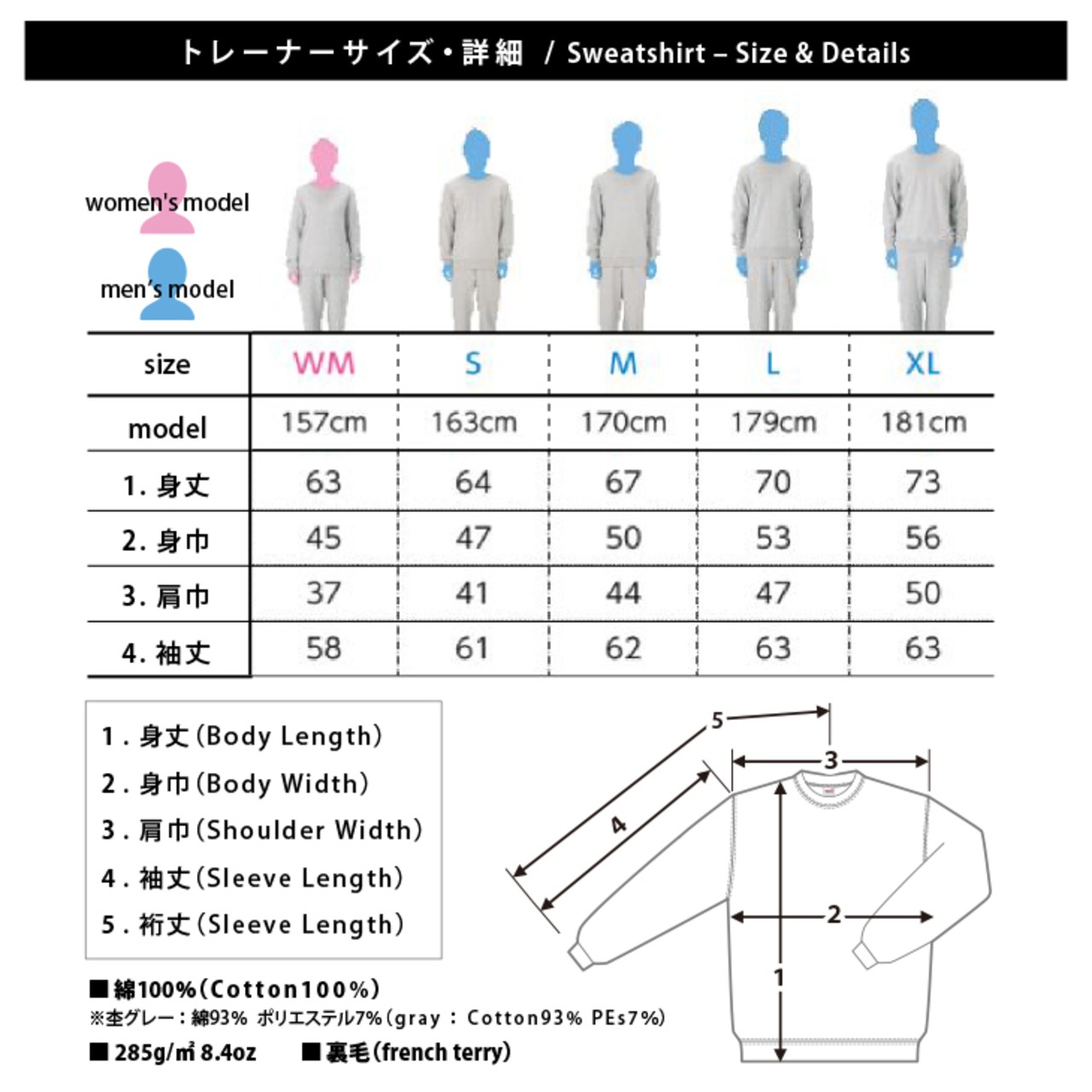 ※杢グレー:綿93% ポリエステル7%